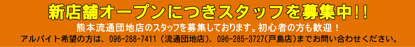 戸島店、流通団地店両店共通のクーポン配布中!!