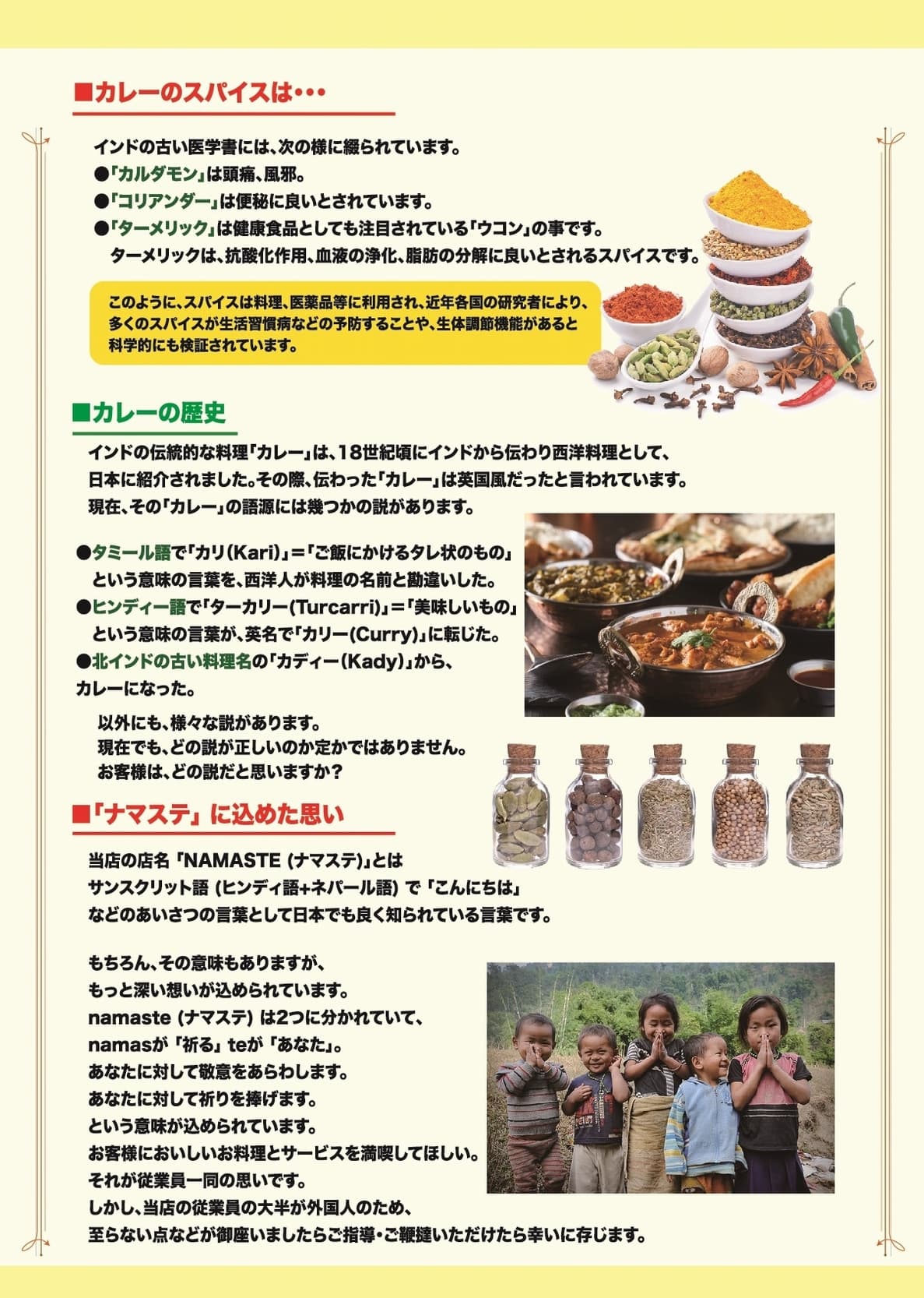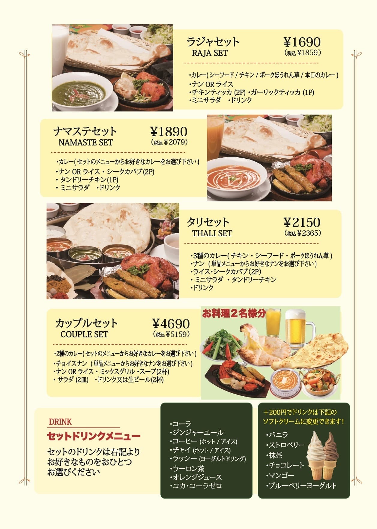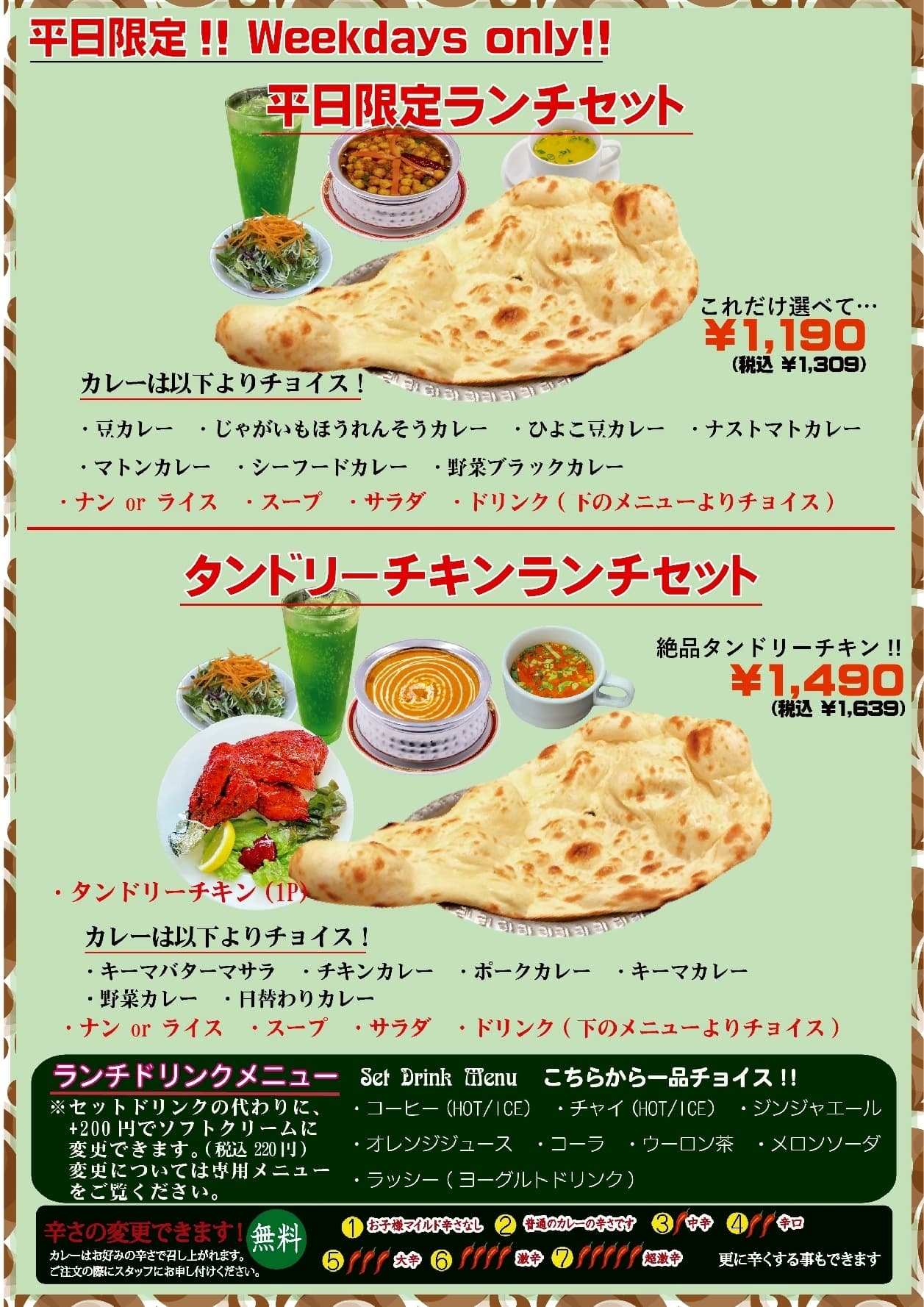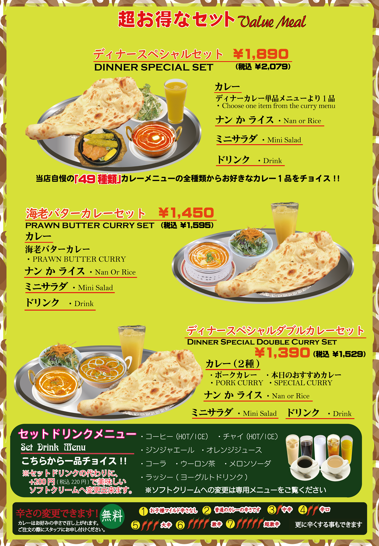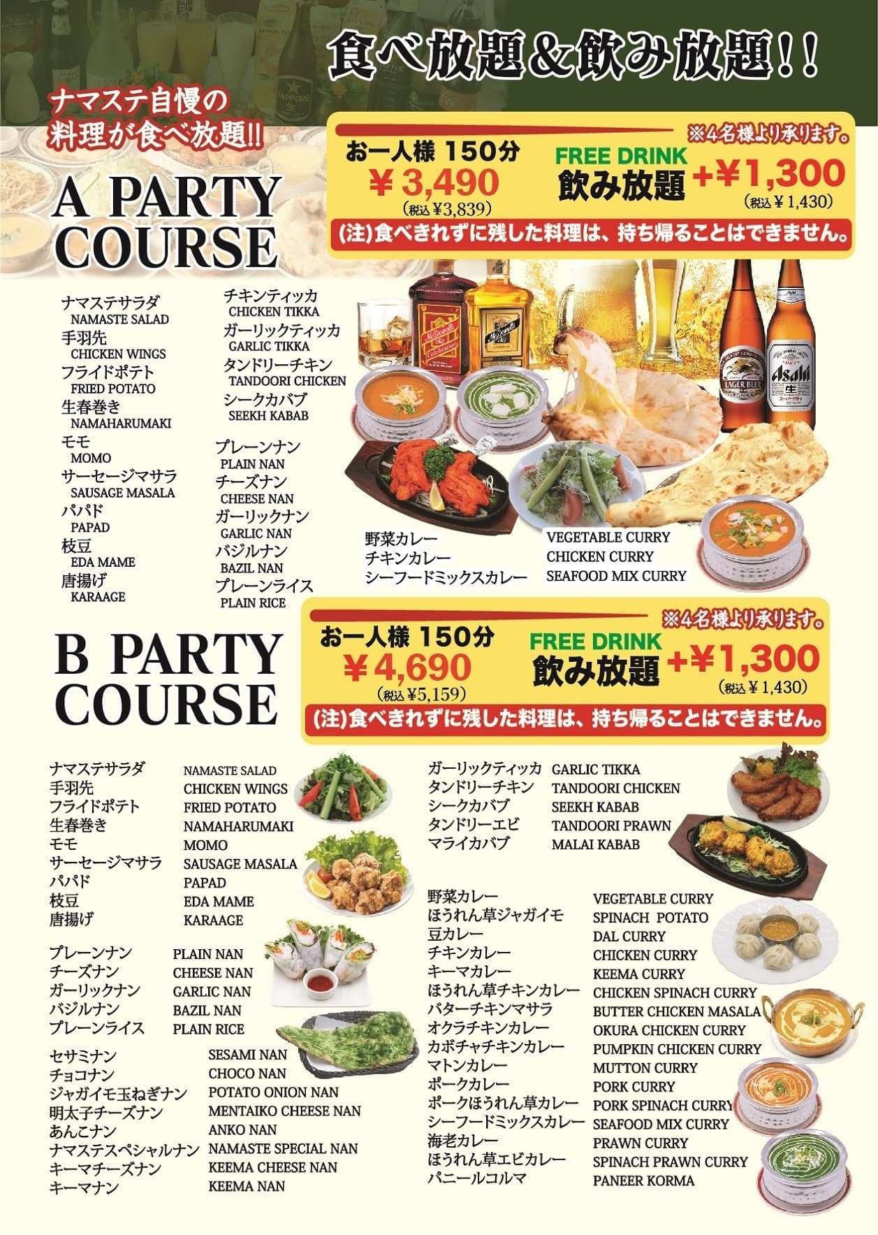 TOP お店のご案内 ナマステ熊本戸島本店 ナマステ熊本流通団地店 メニュー 熊本戸島本店メニュー 熊本流通団地店メニュー 営業時間・店休日 営業時間 店休日 運営会社 お知らせ・フェアなど お店からのお知らせ フェアキャンペーン ご挨拶 熊本戸島本店メニュー グランドメニュー ランチメニュー テイクアウトメニュー パーティーコース 単品メニュー、サイドメニュー、セットメニュー、食べ放題、飲み放題がございます。 ご予約はこちらから
